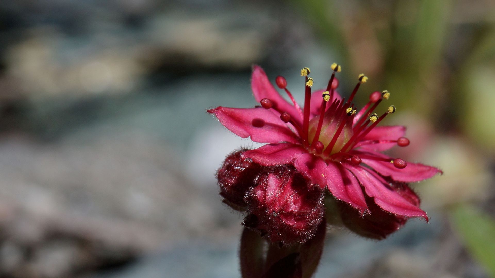 The Cobweb Houseleek is very aptly named – its leaves look as if a particularly hard-working spider has been at work. This plant tends to be small, but its pretty, carmine-red flowers tower into the air and are easily visible.