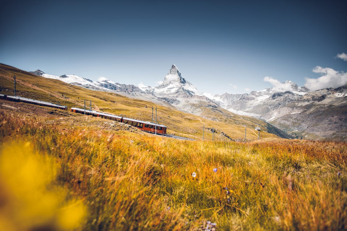 Vom Gornergrat aus bekommst du 29 Viertausender zu Gesicht. Am besten steigst du vom Bahnhof hinauf auf die Aussichtsterrasse. Die Viscope Ferngläser verraten dir die Namen der Gipfel. Magst du es aktiver, dann spaziere eine Runde auf dem 360° Gornergrat Loop. Hier tauchst du in etwa 20 Minuten Fussmarsch noch mehr in die hochalpine Bergwelt ein.