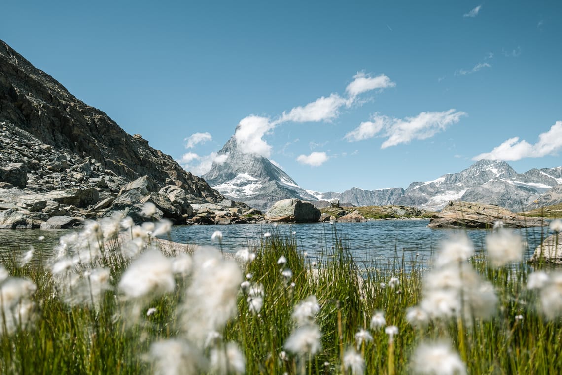 Wollgras am Riffelsee mit Matterhorn im Hintergrund