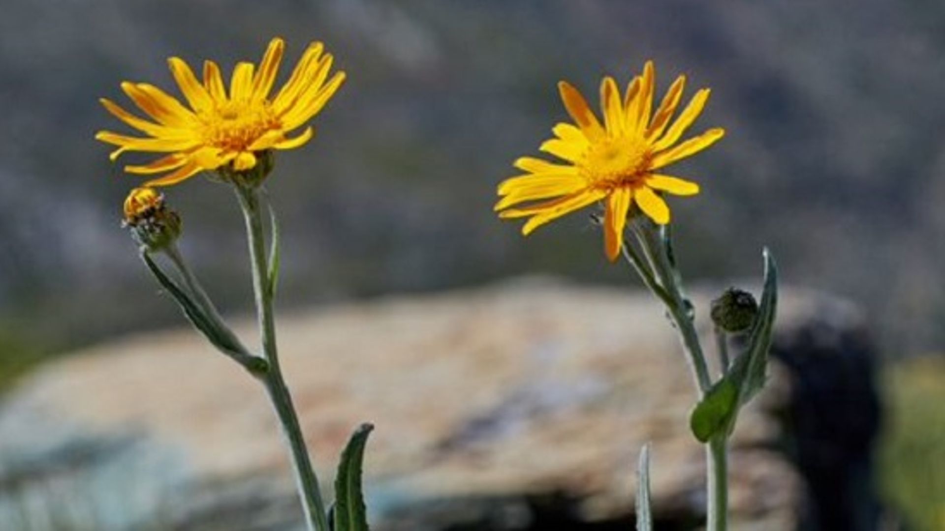 Das Gämswurz-Greiskraut gehört zur gleichen Pflanzenfamilie wie der Kopfsalat und die Sonnenblume. Seine gold- bis orangegelben Blütenstände lassen sich auf Geröll und steinigen Wiesen bewundern.