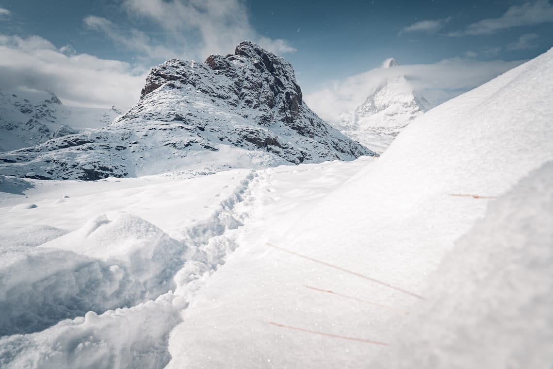 Winterlandschaft am Gornergrat mit Blick auf das Riffelhorn und Matterhorn.