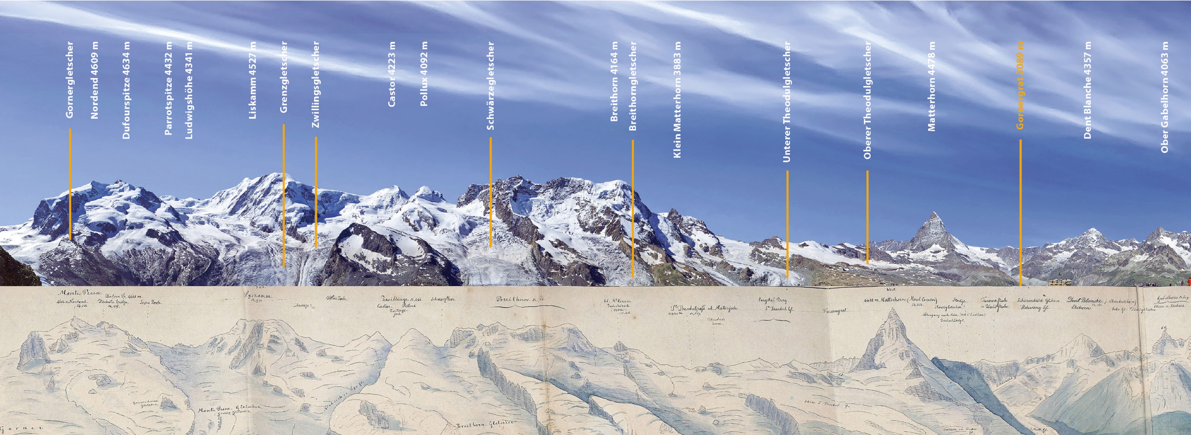 Lorsqu’il arriva au Gornergrat, il fut impressionné par la vue imprenable. En se fondant sur diverses esquisses qu’il réalisa sur place, il dessina un panorama afin de conserver la beauté de la région pour la postérité.