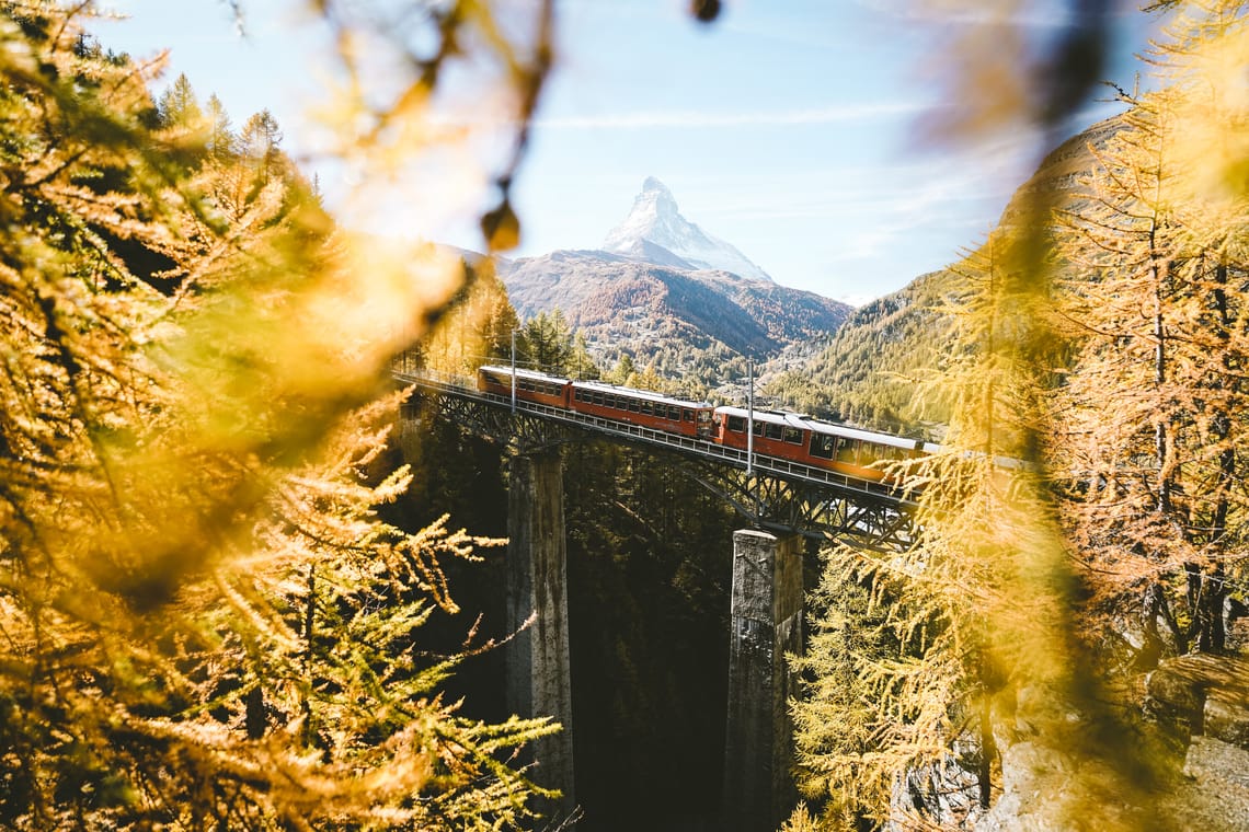 Gornergrat Bahn sur le pont du Findelbach en automne