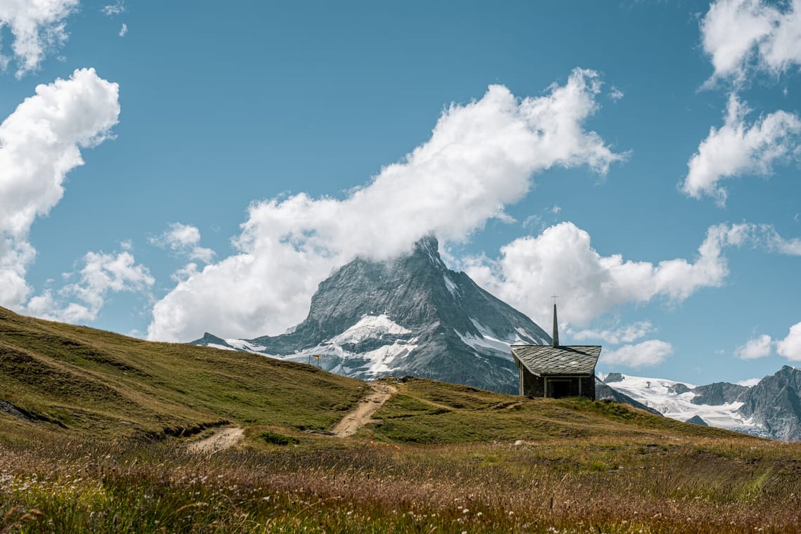 Chemin de randonnée vers la chapelle Riffelberg avec le Cervin en arrière-plan